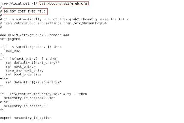 /etc/default/grub က ပြုပြင်လိုက်တဲ့ changes မှန်သမျှကို ဒီ config file မှာ သွားပြီး update (or) new grub config file generate လုပ်ပါတယ်။ အရေးကြီးတာ တစ်ခုက ဒီ config file ကနေ တိုက်ရိုက် ပြုပြင်ဖို့ recommend မပေးထားပါဘူး။ ပြင်ချင်ရင် /etc/default/grub မှာသွားပြင်ရပါမယ်။